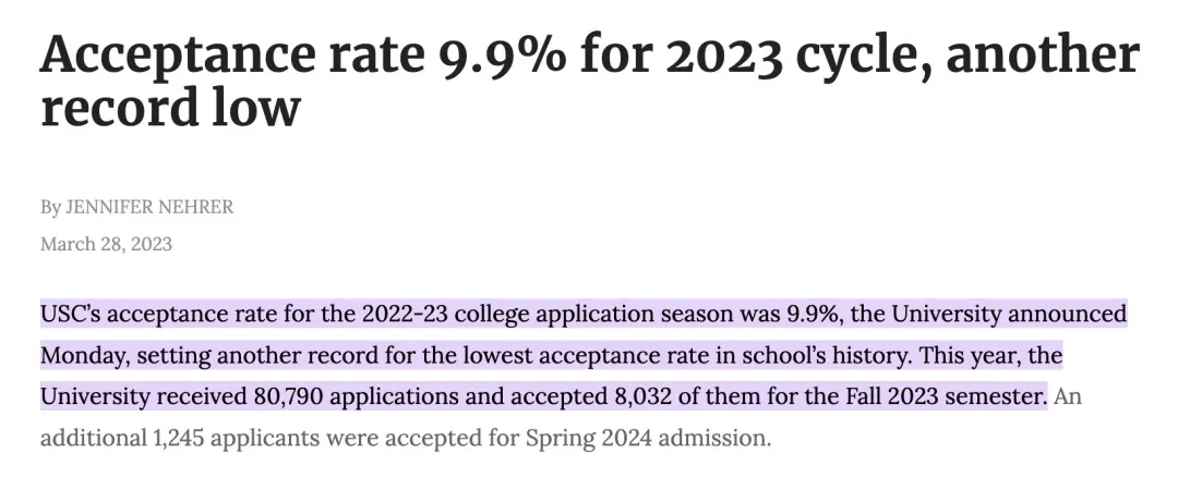 以USC为例,2023申请季的录取率仅为9.9%,创下历史新低。