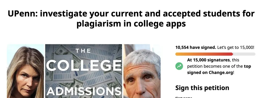 2022年初,超过1万人联名签署请愿书,呼吁宾大对两名学术剽窃的录取学生进行调查。