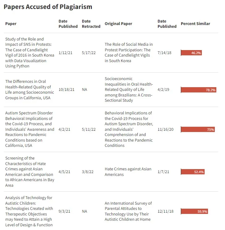 这份请愿书举报的是韩裔姐妹花Annabelle Choi和Madeline Choi,她们的5篇学术论文涉嫌剽窃,查重率甚至高达78%。