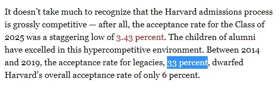 不止是哈佛,就藤校而言,校友子女的录取率通常是整体录取率的2-5倍。而那些1%的超级富二代,被藤校录取的概率是穷人孩子的77倍。