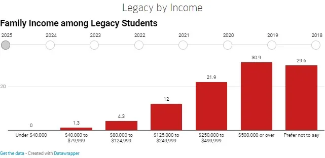 以哈佛为例,在2025届常规录取率仅为3.43%的情况下,校友子女的录取率依然高达33%。