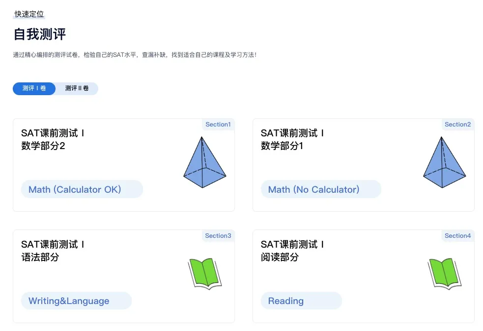 通过精心编排的测评试卷,检验自己的SAT水平。