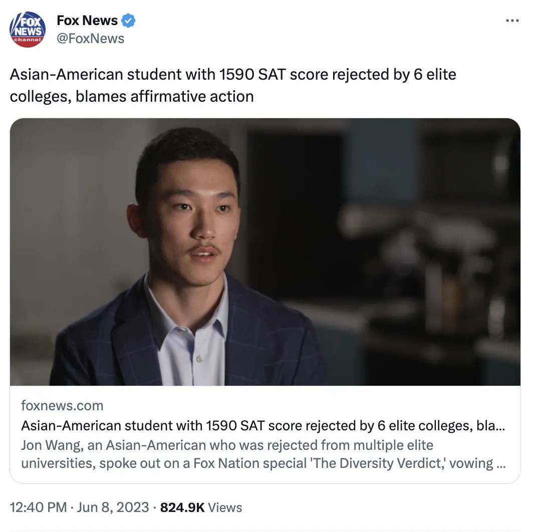 民间平权组织Students for Fair Admissions(简称SFFA)是起诉哈佛和UNC涉嫌亚裔招生歧视的背后推手。