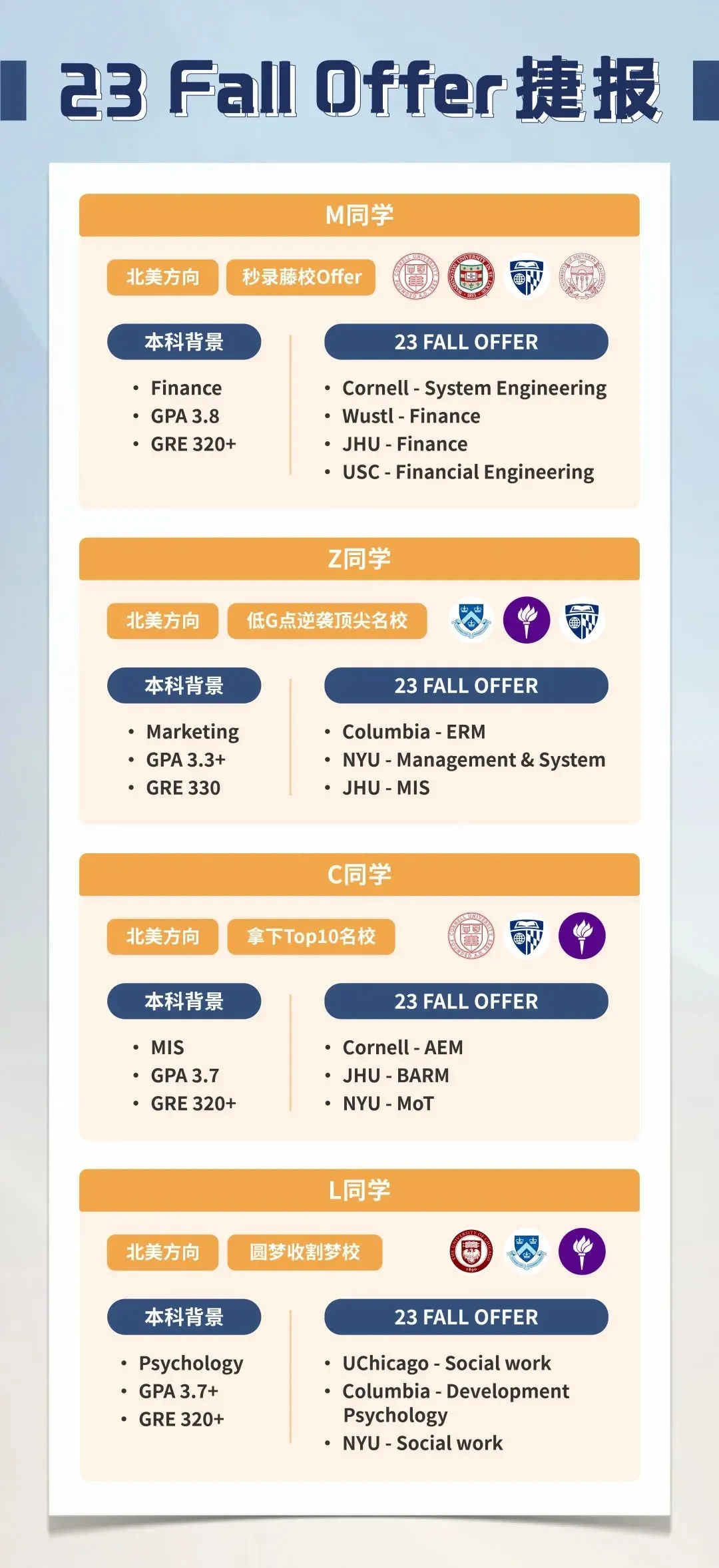 目前,清柚教育已成功帮助无数特拉华大学的学生成功拿下包括康奈尔大学、哥伦比亚大学、宾夕法尼亚大学、斯坦佛大学、杜克大学、约翰霍普金斯大学在内的全球知名大学录取。