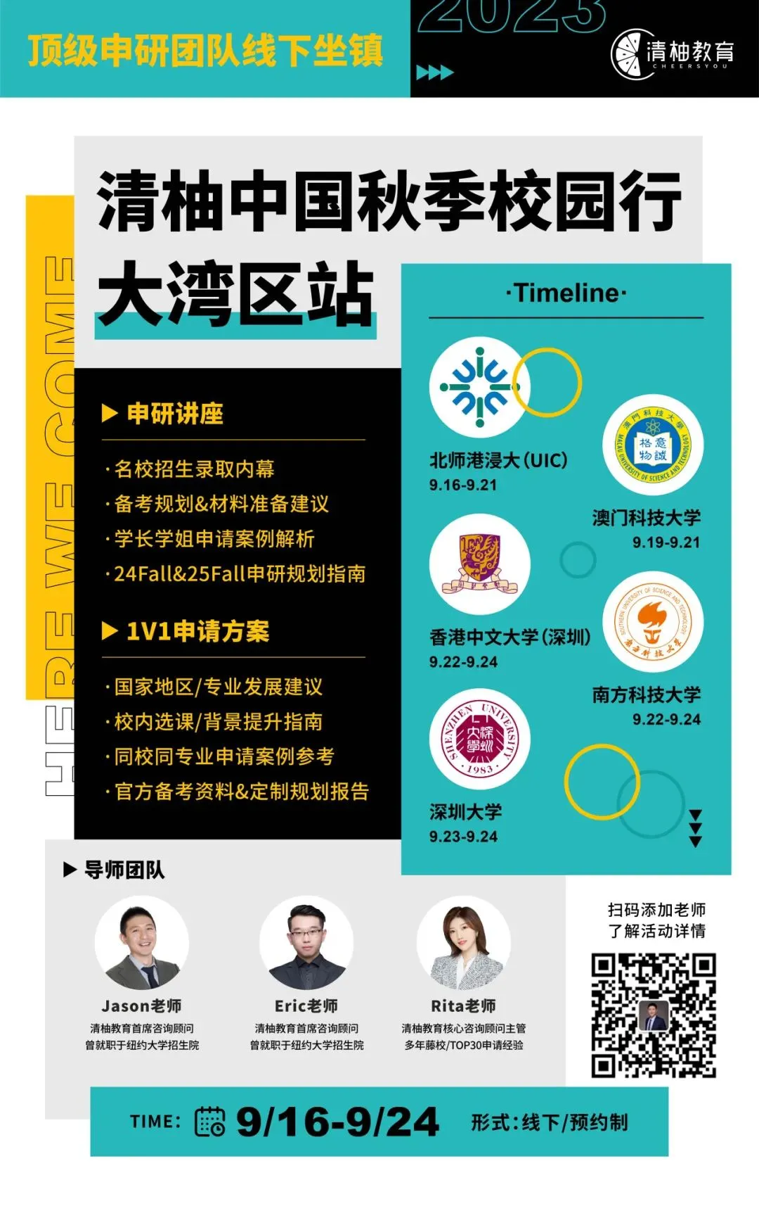 清柚教育大湾区校园行再次出动,顶级申研团队与你不见不散!