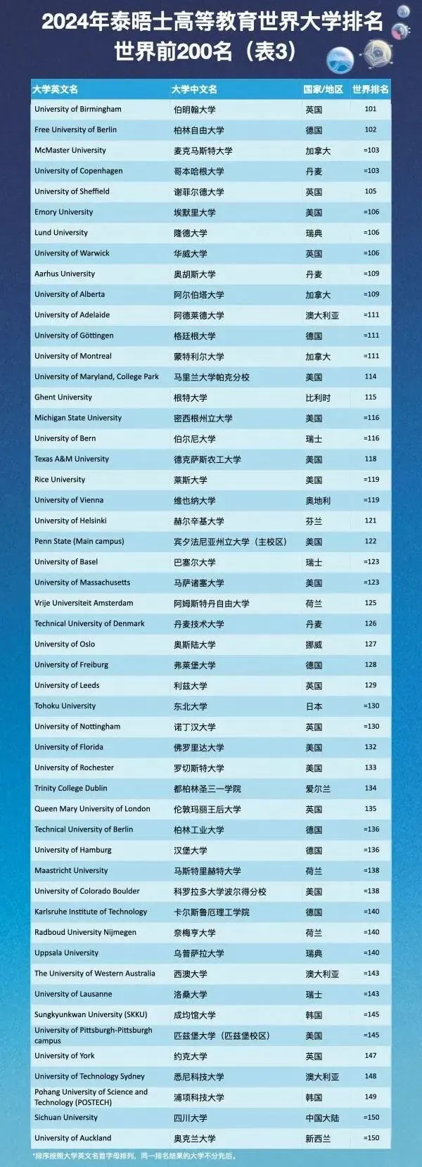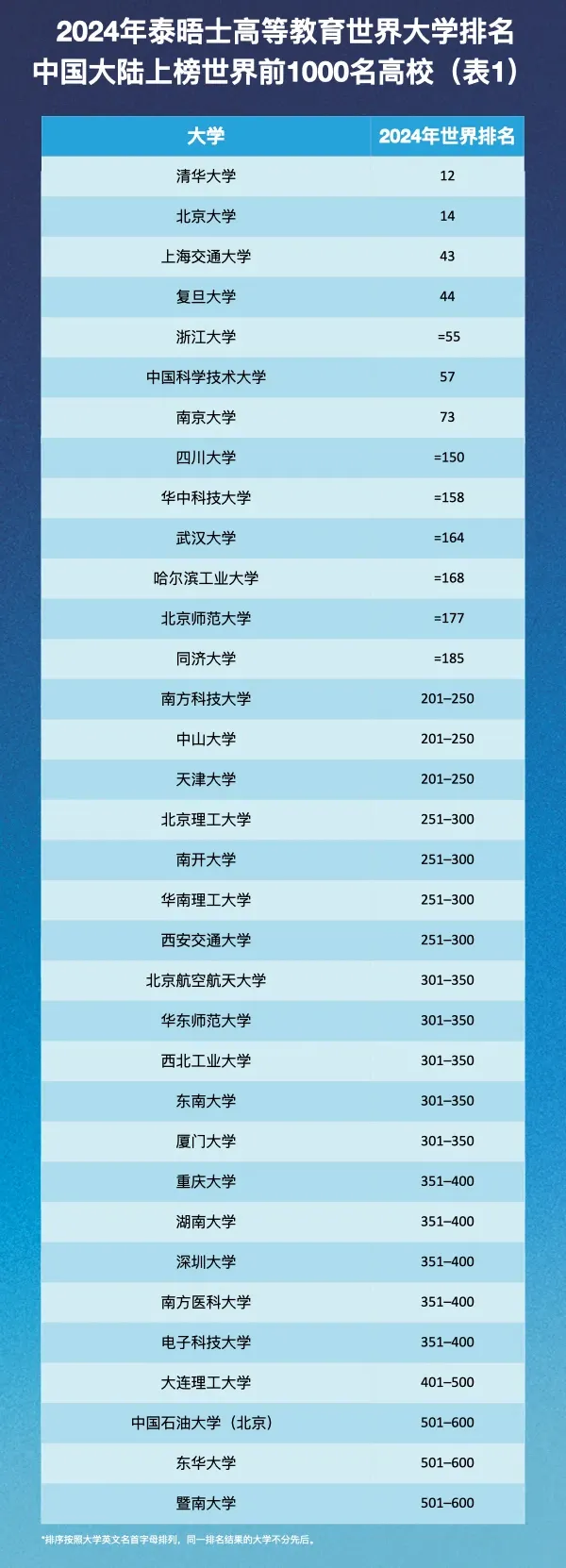 查看完整版2024年THE世界大学排名可前往:https://www.timeshighereducation.com/world-university-rankings/2024/worl...