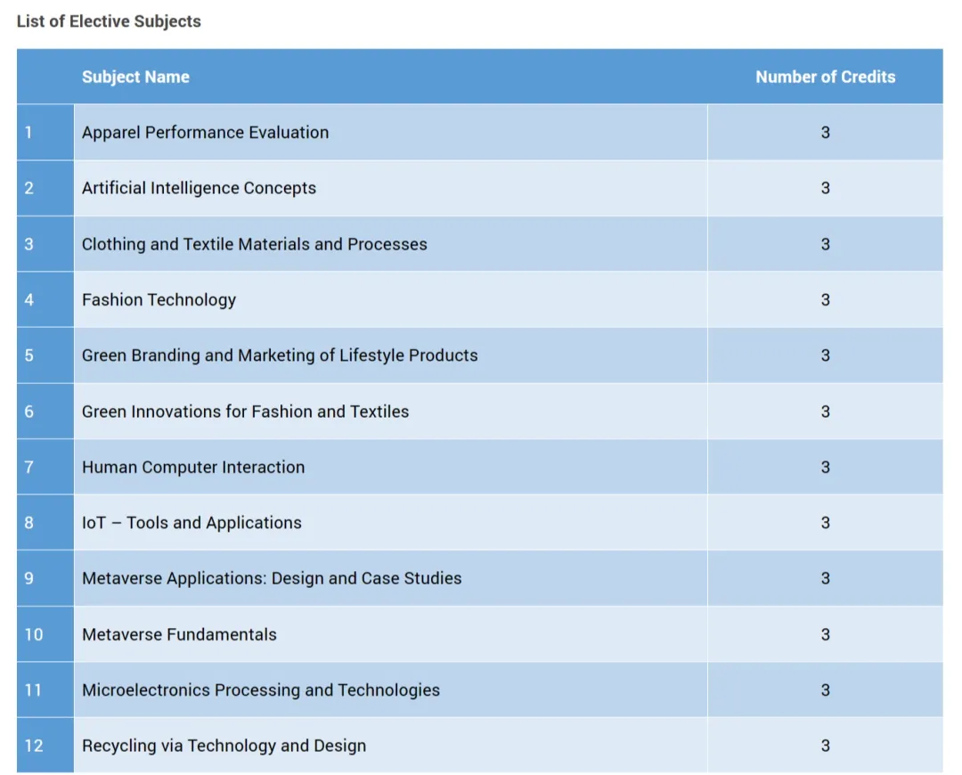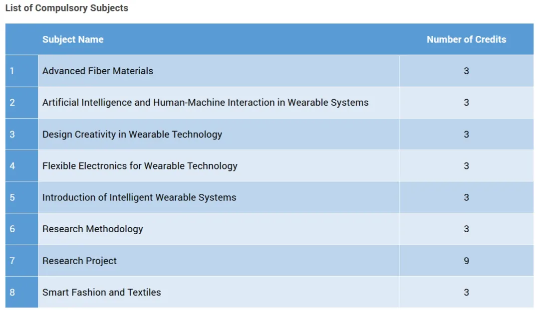 作为中国首个可穿戴技术研究生学位,课程教学上会在人工智能 (AI)、元宇宙、智能时尚和纺织品以及先进材料等领域均有涉及,研究项目由知名教授指导,其中包括被斯坦福大学评为全球顶尖2% 科学家的教授。