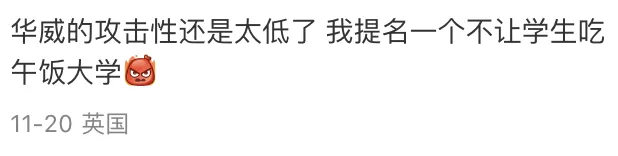 网友补充:提名华威大学,不让学生吃午饭,饿了只能啃同学。