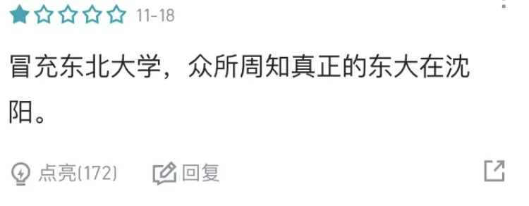 东北大学:差评,众所周知真正的东北大学在沈阳。