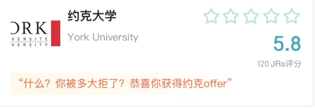 约克大学:被多大拒了?恭喜你,将获得约克offer。