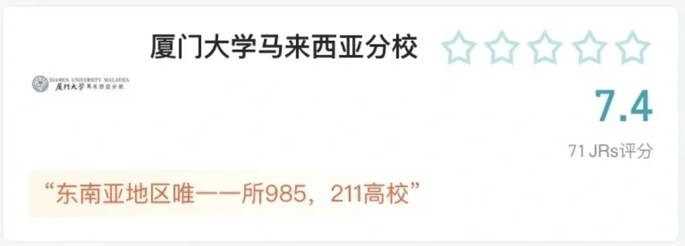 厦门大学马来西亚分校:东南亚地区唯一一所985、211。
