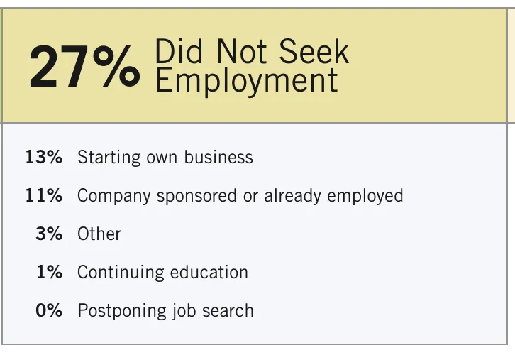 HBS的2023届MBA毕业生有27%没有找工作,而是选择创业、继续深造,或是回到sponsor自己学业的老东家上班。