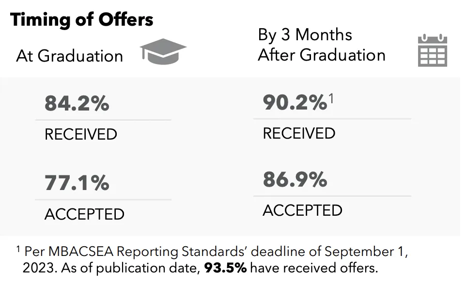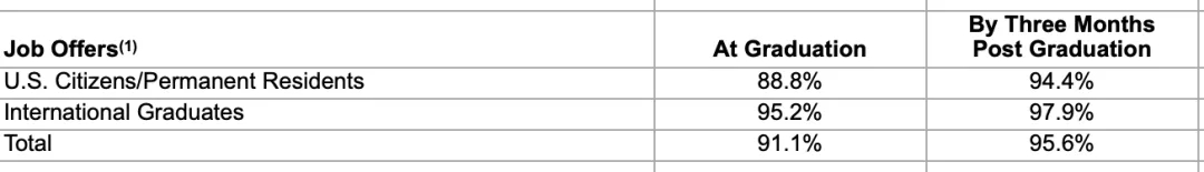 芝大Booth商学院的就业数据也较往年相比略有下滑,获得offer的毕业生比例从2022届的96.8%跌至95.6%。