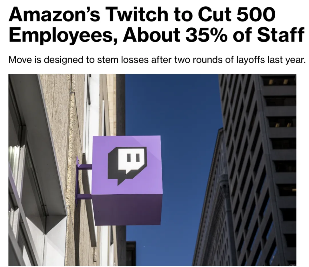 本月初,Amazon旗下直播平台Twitch宣布裁员约500人,占员工总数的35%。