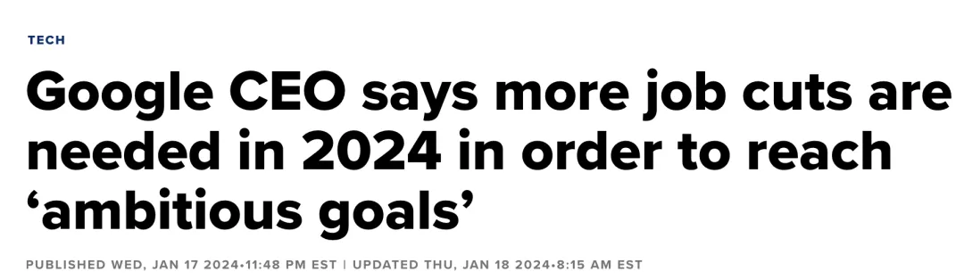 上月,谷歌发布了AI大模型Gemini,对标GPT-4。估计后续烧钱的地方很多,而且AI也会取代一些人工,再加上年初财报压力,裁员几乎成为必然。