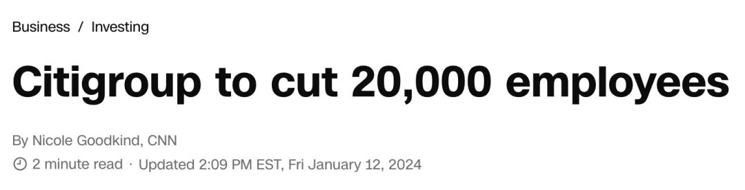 花旗银行计划在未来两年内裁员20,000名员工。