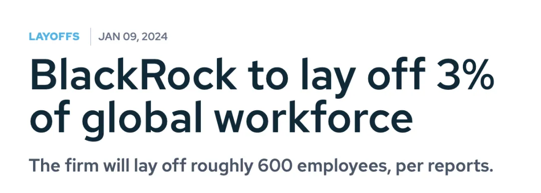 知名投行Black Rock计划裁员600人,约占员工总数的3%。