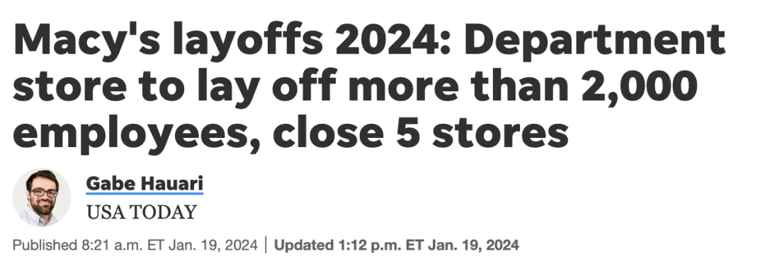 梅西百货计划裁员2,350人(约占13%),并关闭5家门店。