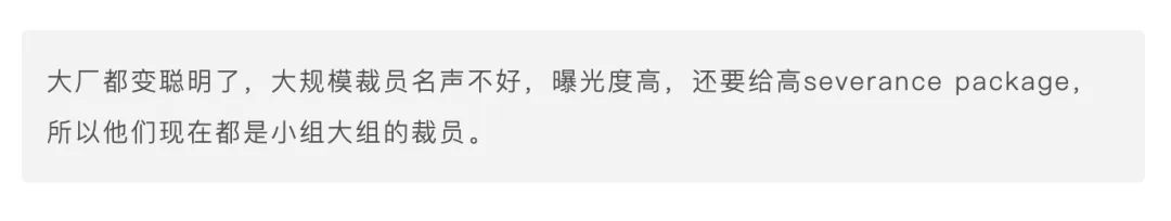 后裁不如先裁,起码包给的够大。现在大厂都裁出经验来了,无预警直接开裁,根本来不及反应。