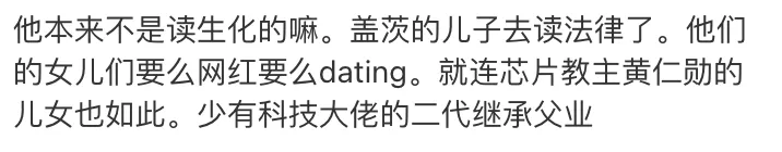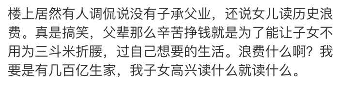 有网友觉得作为大佬孩子,没有继承父业,名校读文科有些浪费👇