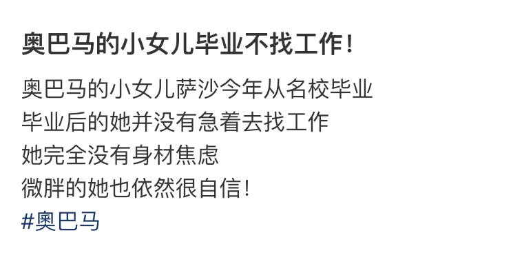 其实这种担心就多余了,身为奥巴马的女儿,已经出生在罗马,咱就别操心奥巴马的女儿待业在家了哈😅