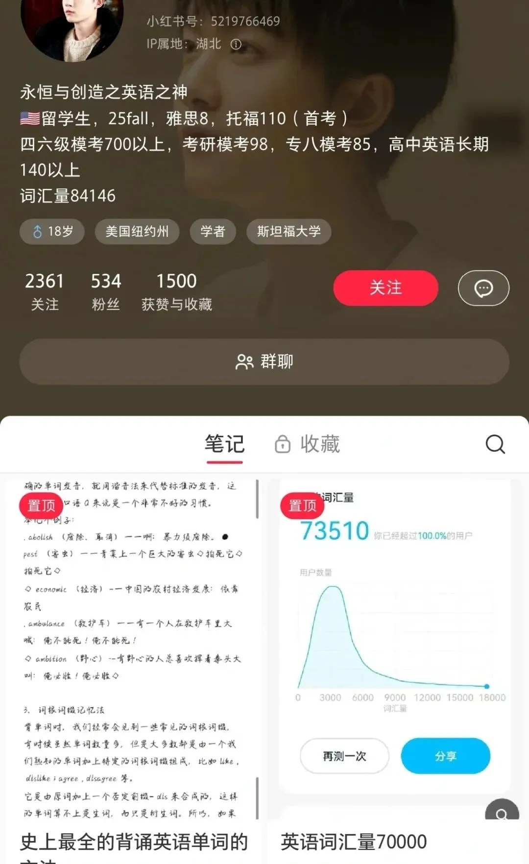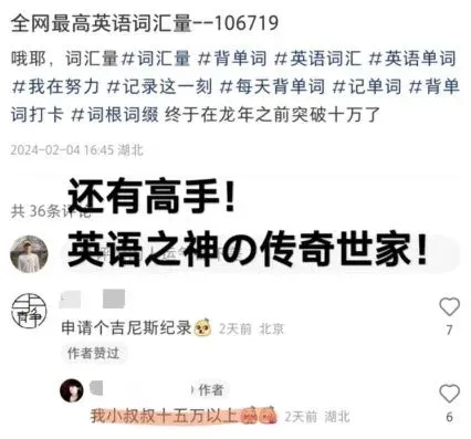 该博主号称自己“每天背单词十几个小时,一天三千左右”,词汇量全网第一。