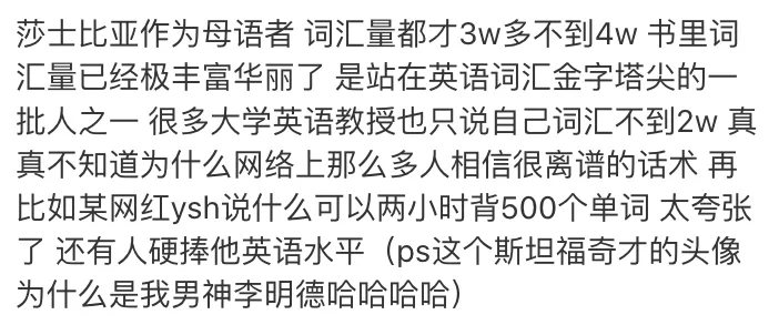 虽然两万词汇量已经是大神,莎士比亚也才三四万,但这位博主必须10万+。