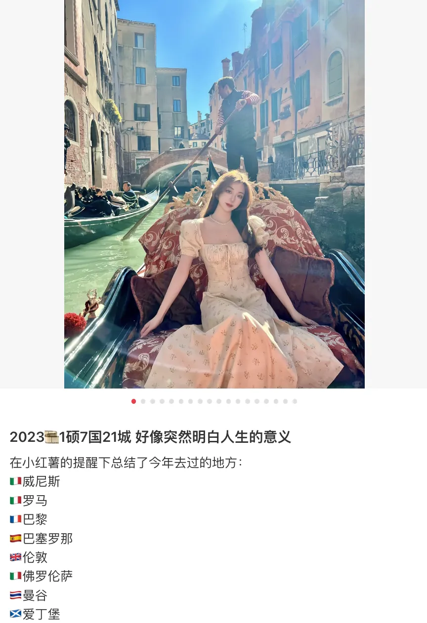 不同国家地区的打卡笔记,全年畅游7国21城,仿佛只有你在赶Due,人家只是来体验人生。