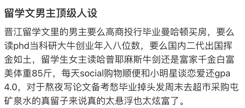 晋江文的留学顶级人设: