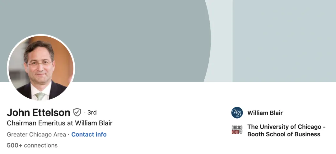 破案了,原来是精品投行William Blair的老板,那能是一般人吗😅