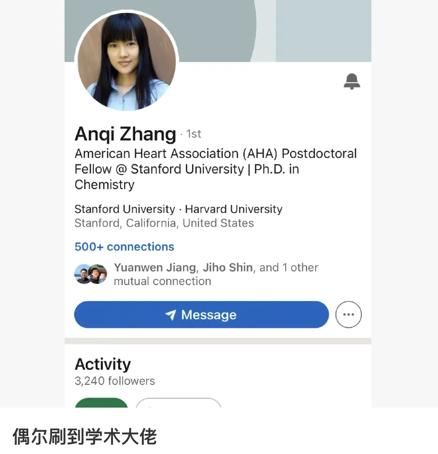 另外一位学术大佬Anqi Zhang,哈佛直博,斯坦福博后,门萨女神,又美又强。