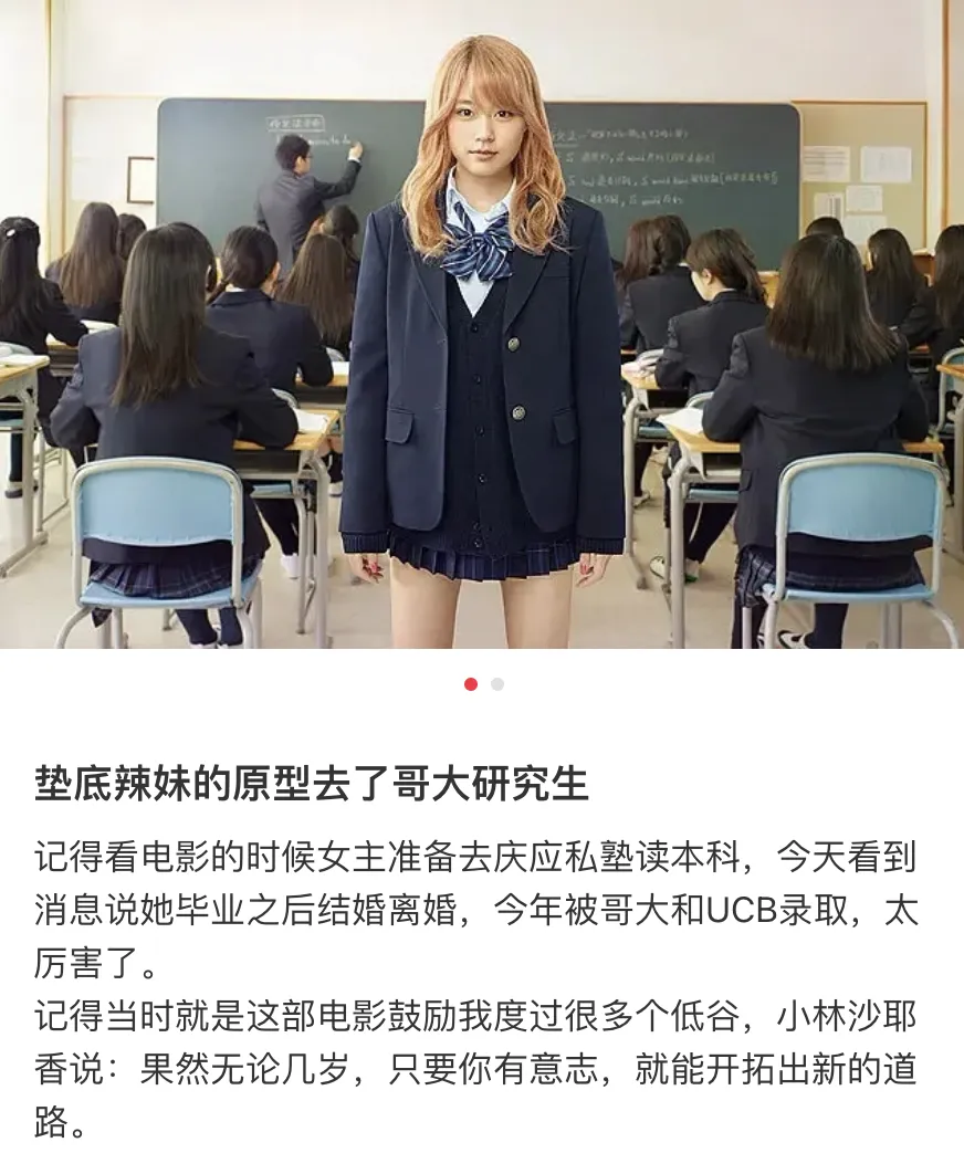 《垫底辣妹》的电影女主原型小林沙耶香,从问题少女逆袭考上日本名校庆应大学,34岁拿到哥大研究生offer,热血又励志。