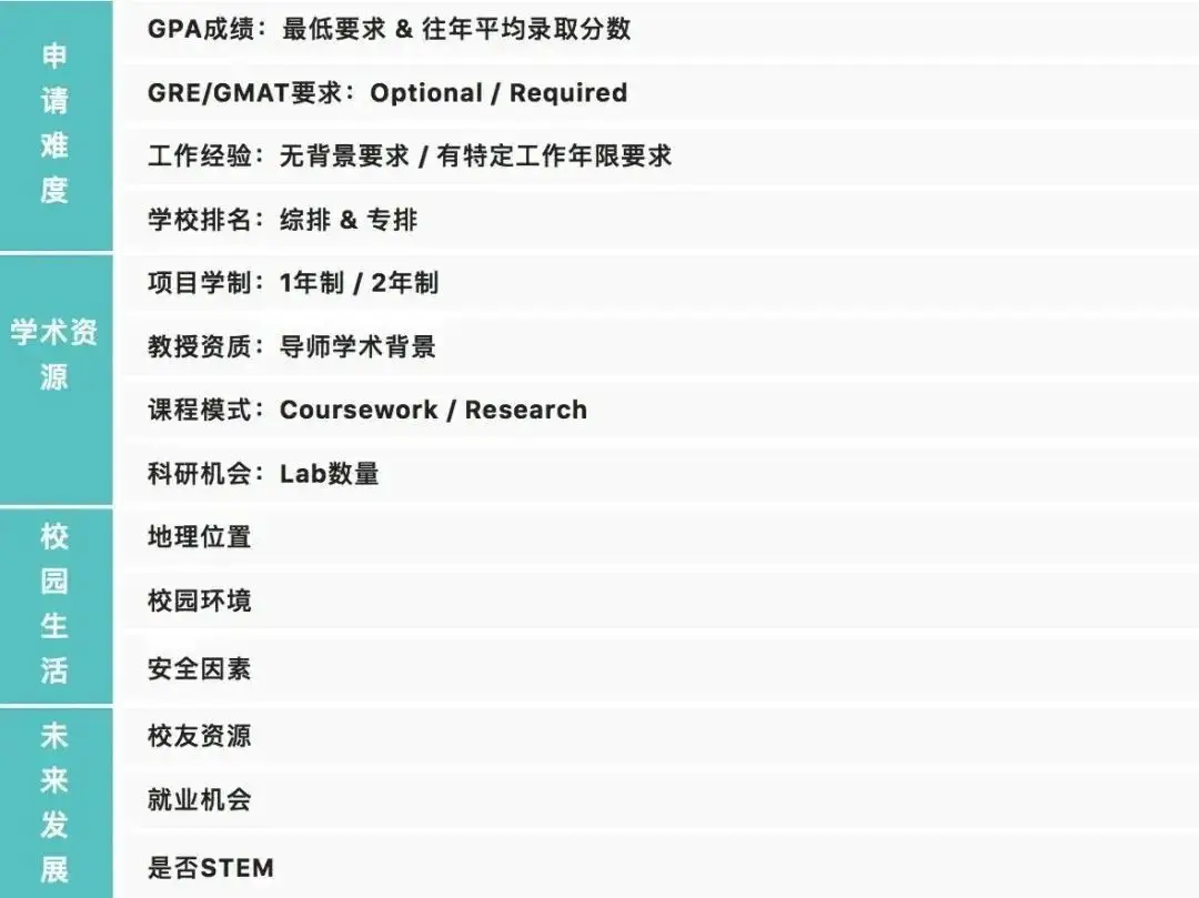 根据以上四个方面,对学校、项目进行匹配与筛选,能够高效地完成选校定项,且是有针对性、能够符合申请者情况与需求的。