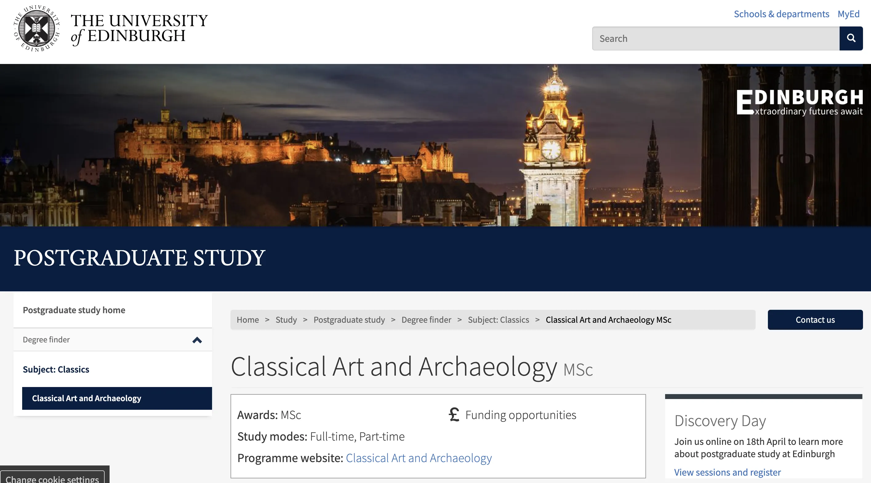 爱丁堡大学的Classical Art and Archaeology专业的课程设置通常包括以下几个核心模块: