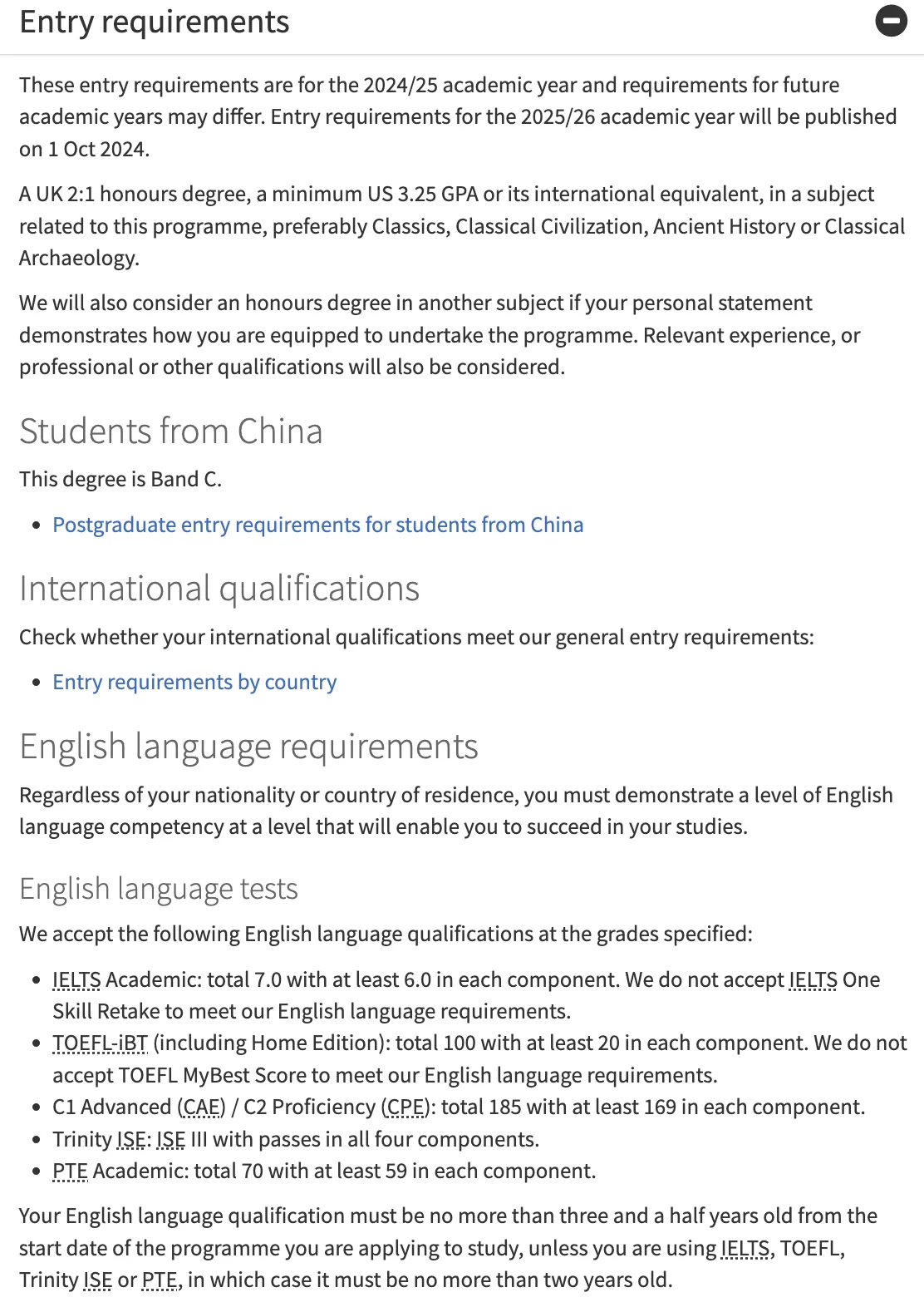 申请者通常需要拥有相关领域的学士学位,如艺术史、考古学、古典学或相关人文社科领域。具体申请要求如下: