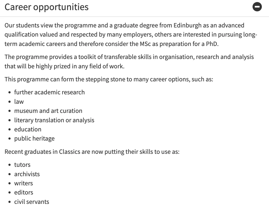 此外,毕业生还可以选择继续深造,攻读博士学位,进一步提升自己的研究能力和学术地位。爱丁堡大学的Classical Art and Archaeology专业因其卓越的教学质量和研究实力,为毕业生提供了坚实的基础,使他们能够在各自的领域内取得成功。