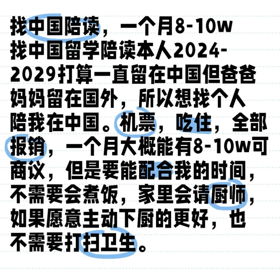像极了小红书上留学富孩,重金求一个伴读丫鬟。