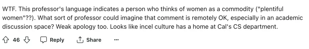 最近UC Berkeley教授的厌女言论一出,网上炸锅了。