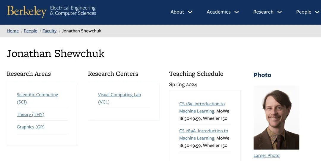 Jonathan Shewchuk是UC Berkeley的CS教授,这学期教CS 189.Machine Learning,是Rate My Professor上评分高达4.9的教授。