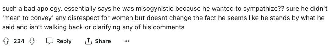 被骂上热搜之后,这位怼天怼地的教授也开始快速滑跪,公开道歉:“我为自己之前的不当言论道歉,但请大家相信我绝没有不尊重女性的意思。我的出发点只是帮助学生,毕竟生活不易,也请大家互相理解。”