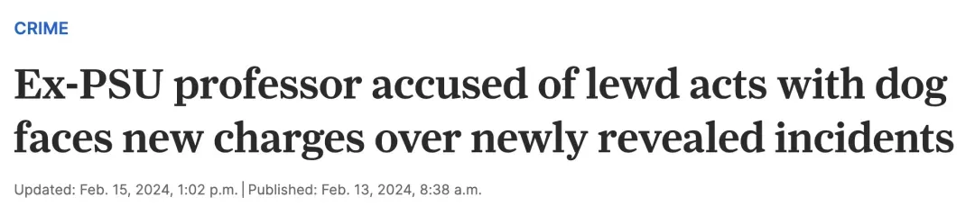 Penn State教授Themis Matsoukas的行为更是震碎三观,去年他被曝出强奸自己的宠物狗。