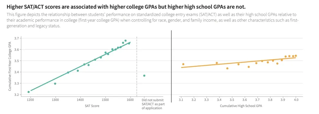 学生在大学表现是否出色,能否进入顶尖研究生院或被理想公司聘用,标化成绩远比高中成绩预测得更好。