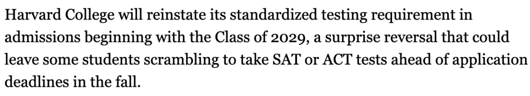 之前由于COVID-19,不少学校都采取了标化成绩选择性提交的政策,但现在越来越多大学恢复标化要求,对于一些原本没有计划参加考试的申请者来说,这种转变可能会打乱原本的计划。