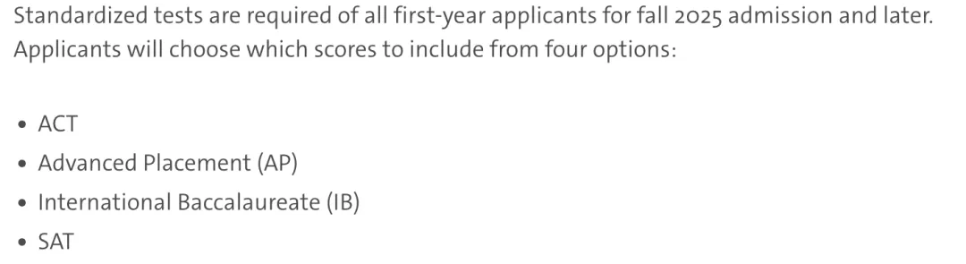截至目前,已有多所大学更新25/26Fall本科申请的标化要求: