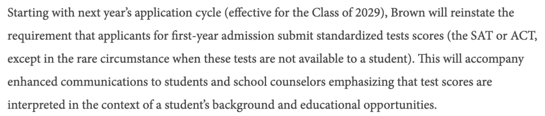 这也是继哈佛、耶鲁、布朗、达特茅斯之后,第五所恢复本科生SAT/ACT硬性要求的藤校。加上其他多所名校同步恢复标化考试政策,美本申请全面标化的时代即将正式回归。