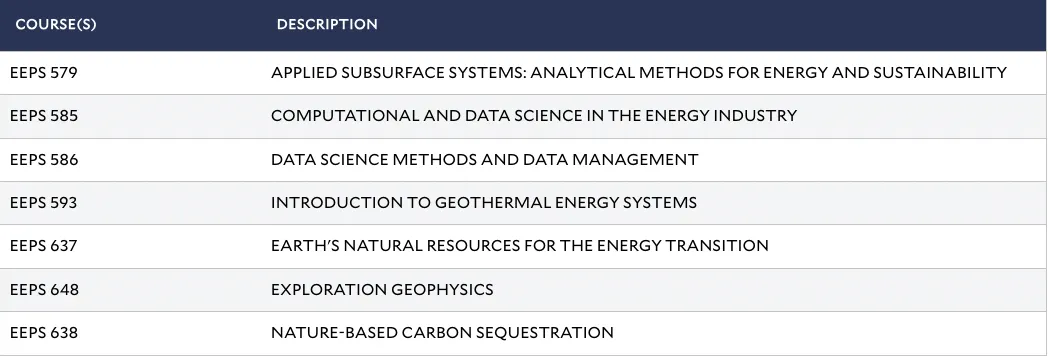 完成一个专业领域的要求。METS学位项目提供两个专业领域方向:Engineering或Geosciences