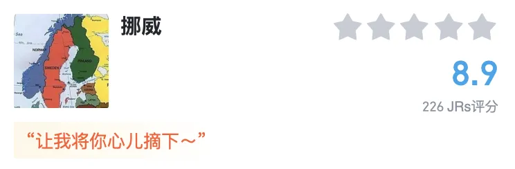 五星率到了43.5%,将近一半,看来大家对英国的评价还是比较好的!