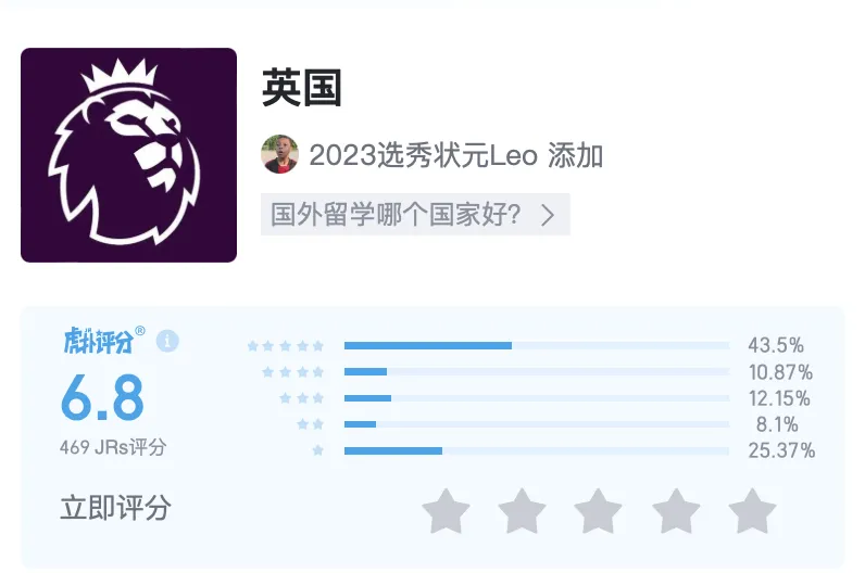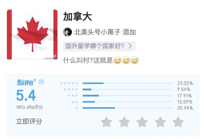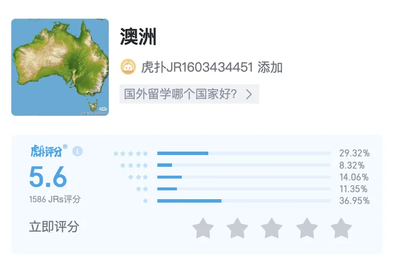 这不,最近万物皆可评分的虎扑又在留学圈整新活了!留学国家评分它也来啦!