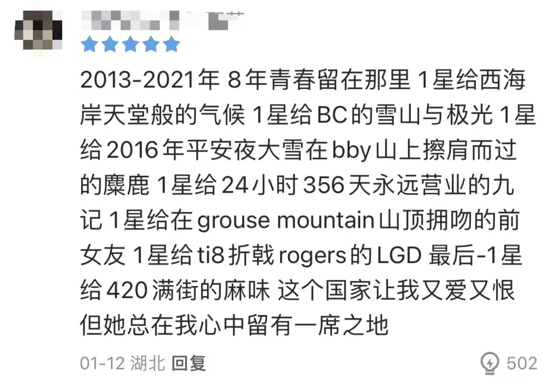 不过加拿大留子倒是比较真情实感,高赞第一很认真的写了自己的打分准则以及在加拿大留学期间的爱恨情仇。