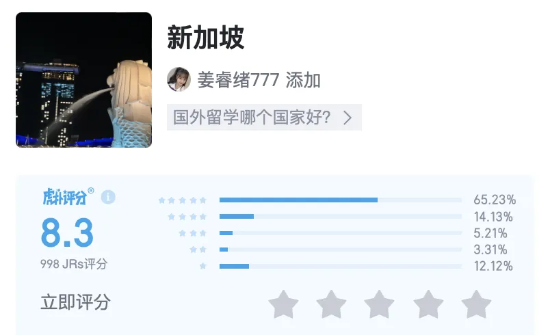 新加坡的评分竟然在几大热门留学国家里拔得头筹,与之对应的,争议也比较小。